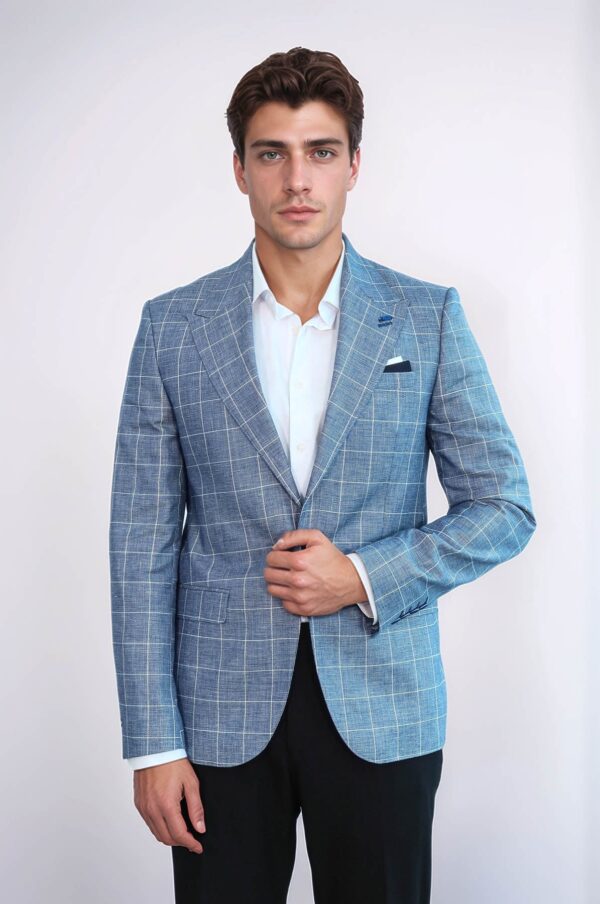 Introducing our blue jacket, designed to complement your casual elegance. With its one-button wide pointed collar and plaid designs, this jacket offers a modern atmosphere. Perfect for both office and jeans combinations, it adds a sporty touch to your style. Made with light-toned plaid patterns and fabric trousers in blue tones, this slim fit blazer jacket is a must-have. Find all the parts you need for your combinations on our site, where you can enjoy discounted prices and discover trendy, high-quality products. Elevate your style with our blue jacket today!