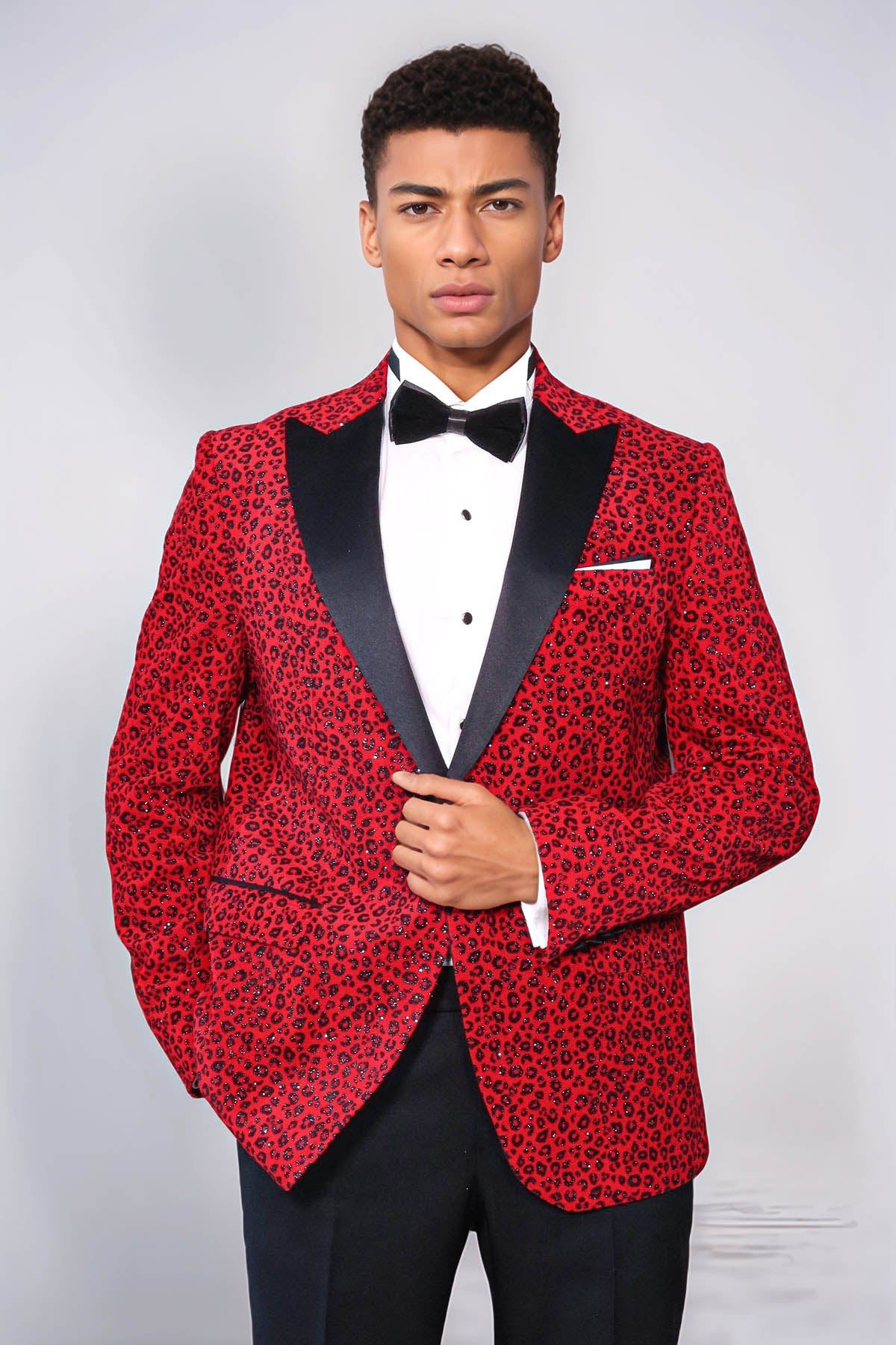 Dress to impress with our Leopard Pattern Slim Fit Peak Lapel Burgundy Men Prom Blazer. This elegant blazer features a stylish leopard pattern and a slim fit design, creating a sophisticated and modern look. Perfect for any formal event, this blazer will make you stand out with its sleek peak lapel and rich burgundy color. Elevate your style with confidence.