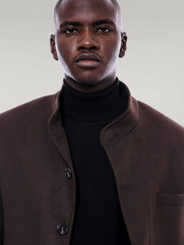 Be the first to review “Mandarin Collar Brown Cachet Coat”