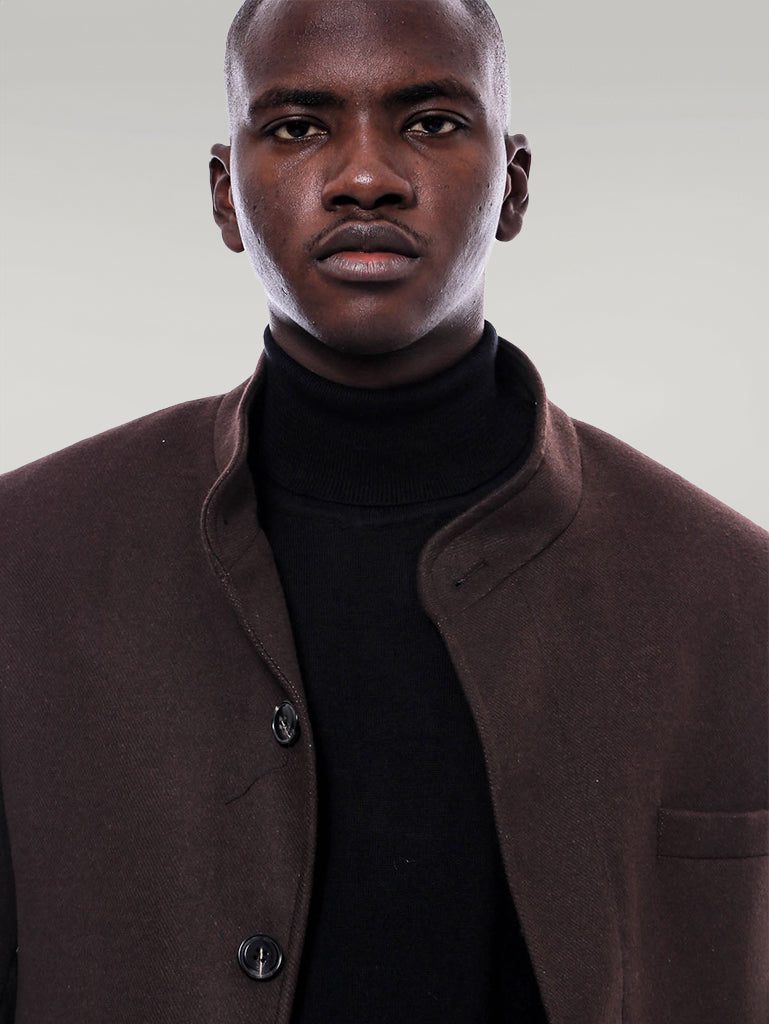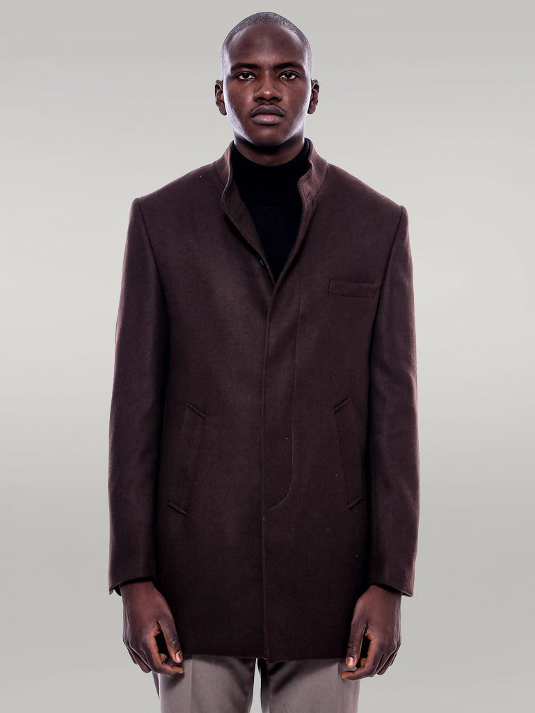 Mandarin Collar Brown Cachet Coat