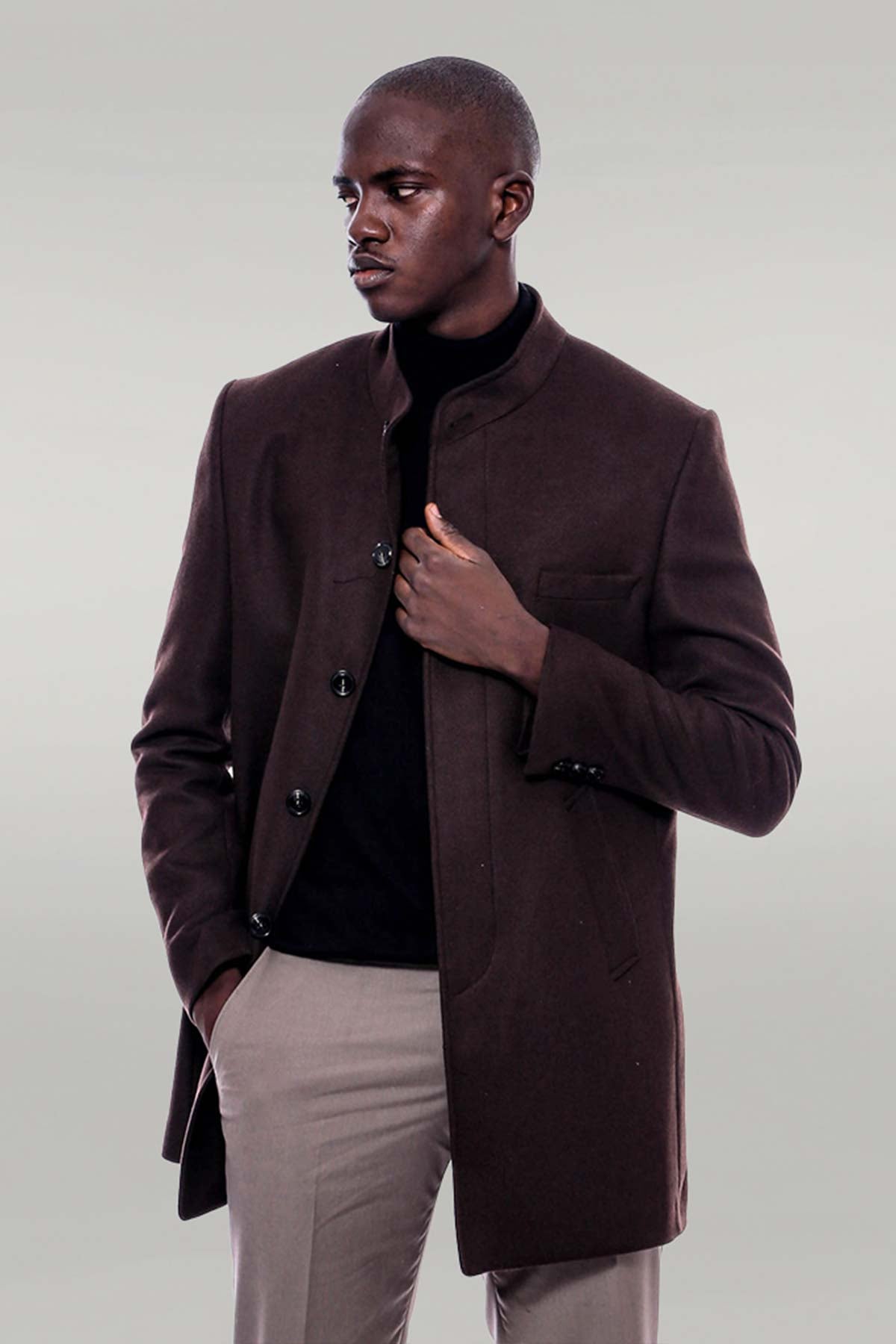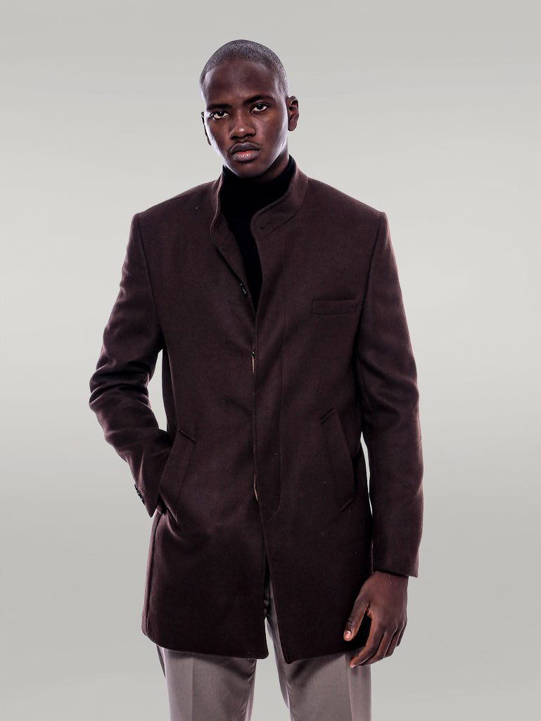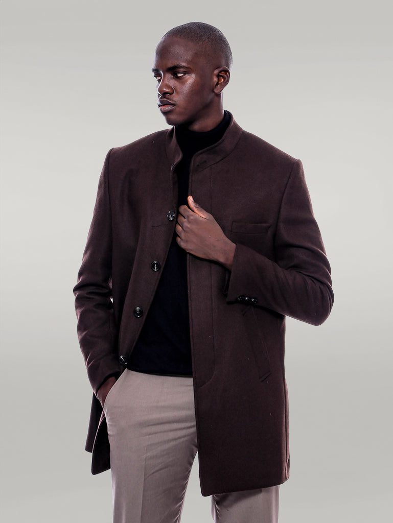 Expertly tailored and crafted with a sleek mandarin collar, the Brown Cachet Coat from elevates any look with its sophisticated style. Made with top-quality materials, this coat offers both a polished appearance and comfort, making it a must-have for any fashion-savvy individual.