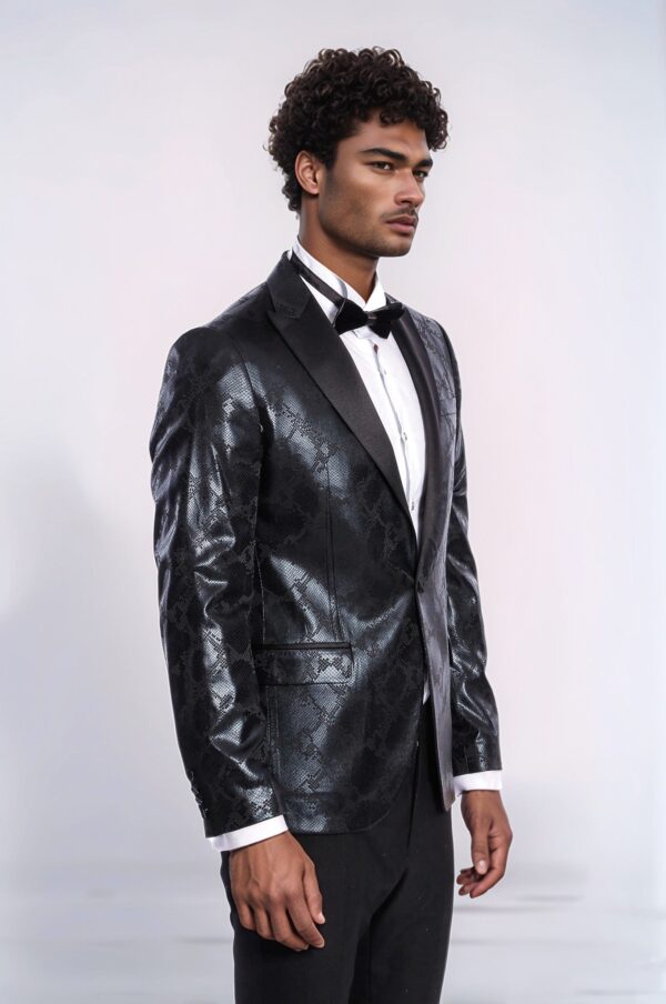 Made from high-quality materials, this blazer offers both comfort and durability, allowing you to move with ease while maintaining a polished appearance. Its slim fit silhouette provides a tailored and flattering look, accentuating your physique. The blazer’s peak lapel adds a dapper touch, elevating your overall look and exuding confidence. Its versatile black color ensures it pairs effortlessly with a variety of outfits, making it a reliable choice for proms, parties, celebrations, weddings, and other memorable events. To achieve a stylish and polished outfit, consider pairing this black prom blazer with a crisp white shirt and black slim fit trousers. Complete the ensemble with a coordinating pocket square and a sleek tie or bowtie for an extra touch of elegance. Opt for black or polished leather shoes to complement the blazer’s classic appeal. Order now and make memorable statement at your next special event!