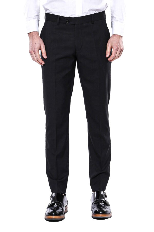 Fabric pants are a great option for both formal and casual outfits. You can feel confident by choosing cuts that suit your style and body type. These pants accompany you in every situation, from business meetings to gatherings with friends. Black patternless slim fit men’s trousers are a stylish and unique option for any occasion. With the classic black tone and simple structure of the pants, you can create different combinations and always look stylish and stylish. Pair the pants with a black shirt and a black blazer for a stylish look for both formal and special events. For shoes, you can choose black leather oxford shoes or loafers to complete the outfit. This stylish combination with black patternless slim fit men’s trousers will allow you to be stylish at any event and will be the wild card of your wardrobe.