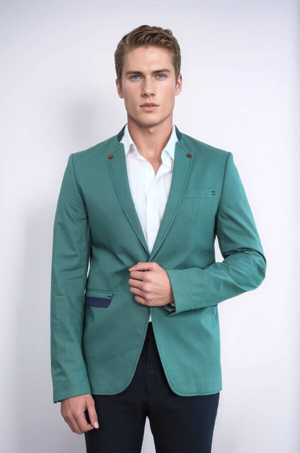 As an expert in men’s fashion, I present to you the Single Button Standing Collar Green Men Blazer from . This blazer exudes elegance with its standing collar and single button closure. Made with high-quality materials, it offers a comfortable fit and a touch of sophistication to any outfit. Elevate your style with .