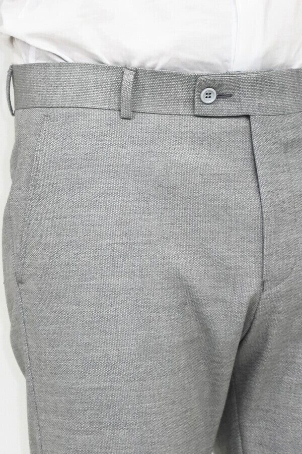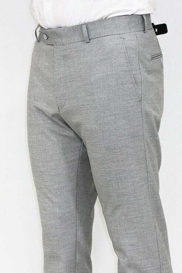 Men’s fabric pants are indispensable pieces of clothing that can be worn comfortably in all seasons and for all kinds of events. They help you reflect both classic and modern styles with their straight cuts and stylish details. Different colors and fabric textures offer options that appeal to every style. Gray patterned slim fit men’s trousers are designed to make your combinations more striking and unique. These trousers offer both a professional and stylish look with their patterned structure and modern gray tone. You can redefine your business look by combining these gray patterned slim fit men’s trousers with an outfit that reflects the modern workwear style. Pair them with a white shirt and a navy blazer for a formal and stylish look. For shoes, you can choose black leather oxford shoes or brown loafers to complete the outfit. With its patterned structure and gray tone, your outfit gains an elegant and modern air, while the combination of a blazer jacket and a white shirt reflects your style in your business life. You can create an original look by completing the combination with accessories suitable for your style.