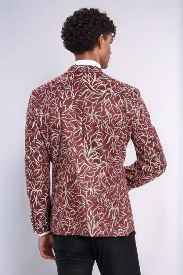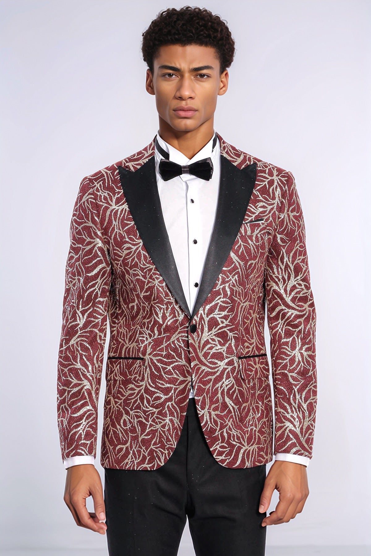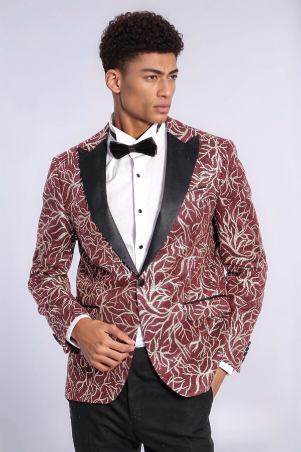 Tuxedo jackets, one of the most special options that come to mind when it comes to elegance, fill your wardrobe with sparkle. Extremely stylish and sophisticated, as well as sparkling and patterned jackets are one of the most effective ways to add elegance to your style at special events or invitations. Available in different cuts and rich patterns, tuxedo jackets allow you to make a remarkable impression at any venue. With its sparkling details and elegant burgundy color, this men’s tuxedo jacket offers a dazzling style for special occasions, invitations, parties and graduation ceremonies. The slim-fit cut perfectly fits your body contours and creates a modern silhouette, while the sparkling pattern gives you an extraordinary look. You can combine your burgundy tuxedo jacket with a white shirt and black slim fit pants for a classic elegance. You can add a flashy touch to your elegance by completing your outfit with black oxford shoes. You can create a bold and modern style by combining your jacket with a black shirt and gray slim fit trousers. To emphasize your burgundy tuxedo jacket, you can complete your outfit with black leather loafers and a matching wristwatch. All eyes will be on you with this jacket that will make you feel special!